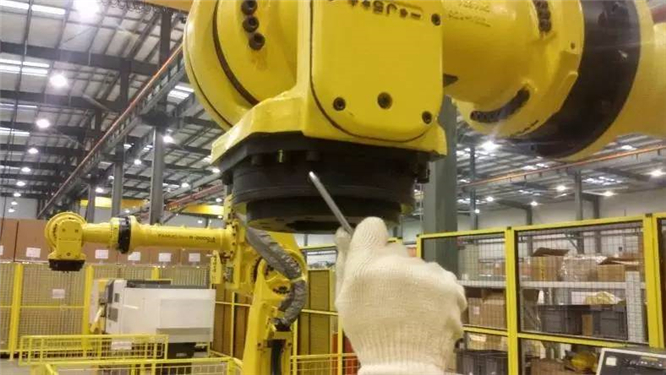 2.調(diào)整機(jī)器人到加油姿態(tài):緩慢單動各軸,將機(jī)器人移到指定姿態(tài)(每個軸所需要的位置)