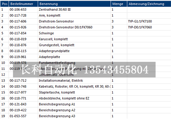 KUKA kr 30-3機器人配件訂貨號:
